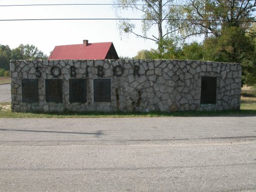 Gedenktafeln Das Mahnmal Hier ruht die Asche von 250.000 in Sobibor Ermordeten Barackenfundamente zurück