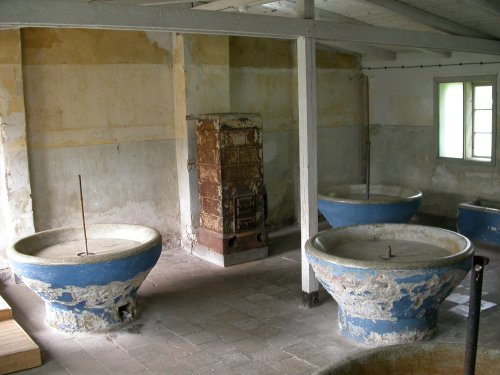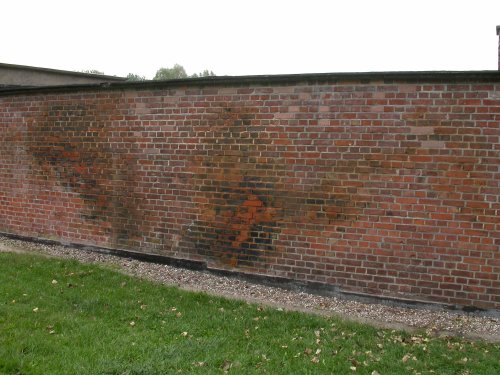 Die Gaskammer. Auch hier ist die blaue Verfärbung durch Zyklon B zu sehen